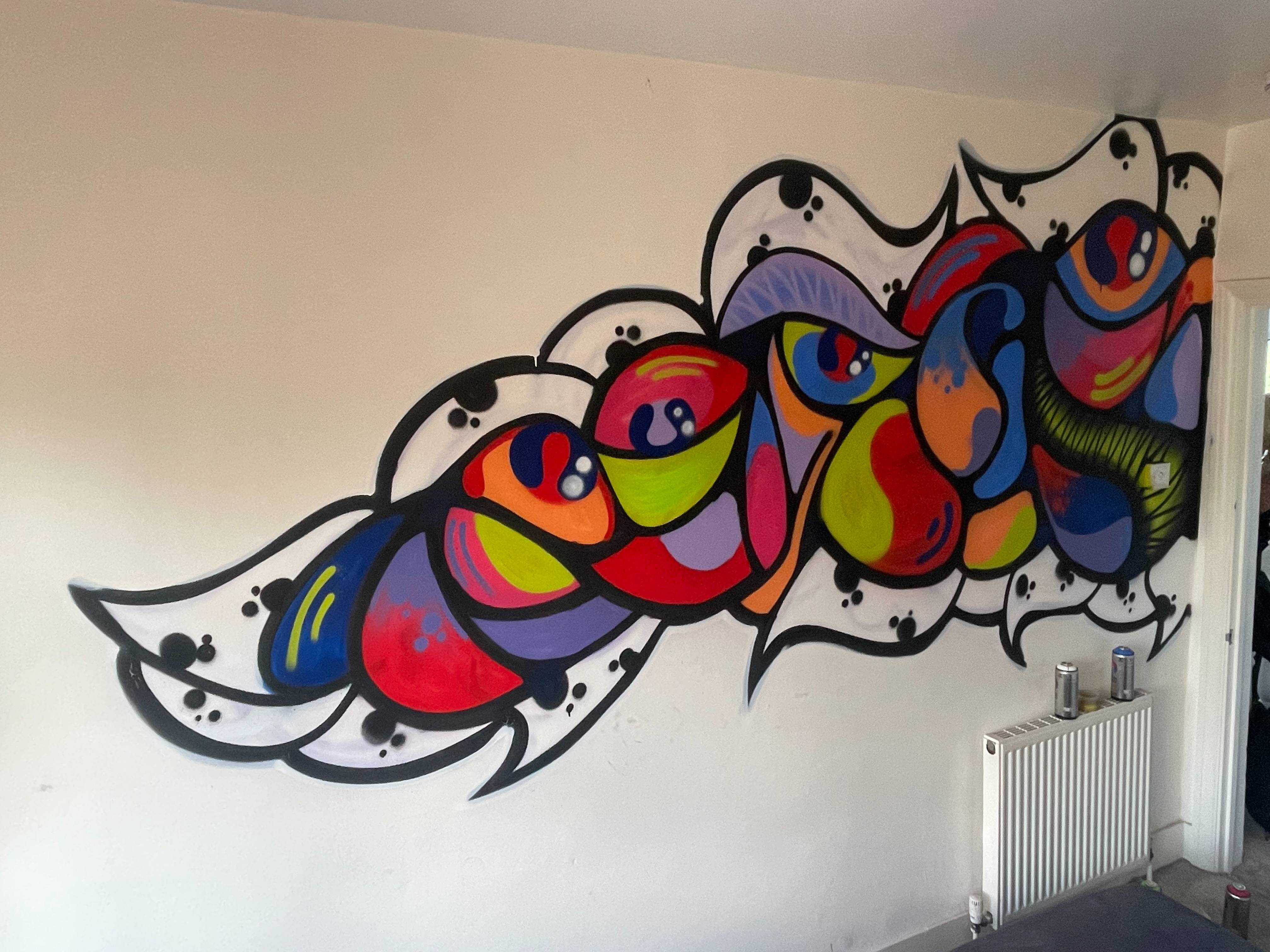 Graffiti inspired shapes collide with music, movement and instinct, forming raw, expressive compositions that pulse with energy. This body of work explores the beauty that emerges from chaos.
