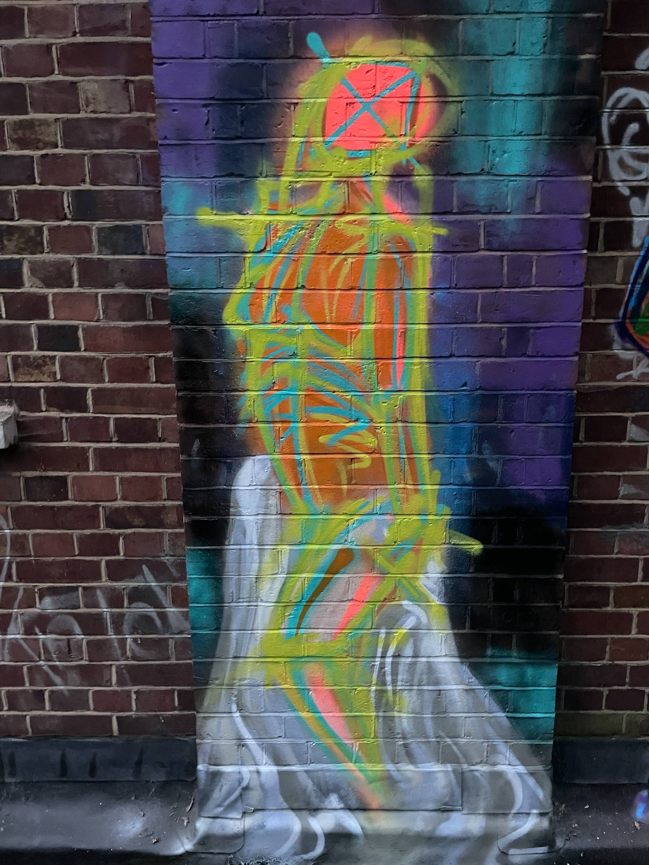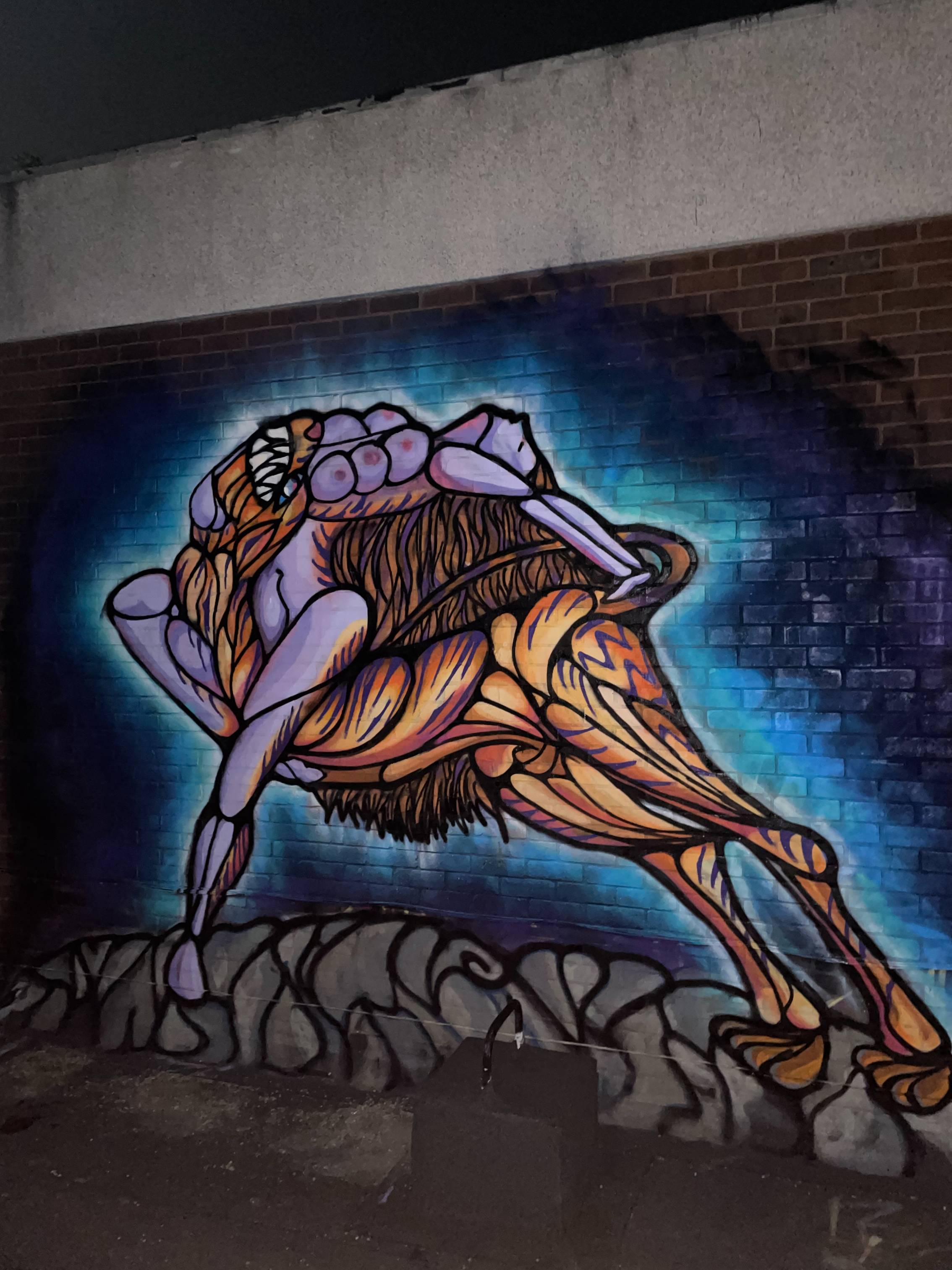 The centrepiece of Krige’s first solo show: London’s largest unlicensed mural. Inspired by Picasso’s Guernica, this work confronts our modern obsession with conflict, spectacle and suffering especially among his generation. The mural critiques how war is packaged, consumed and aestheticised in a culture addicted to violence as entertainment.